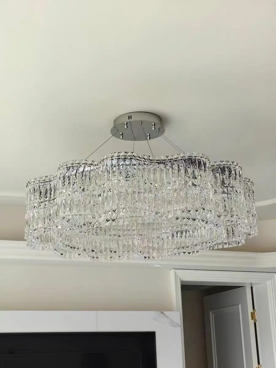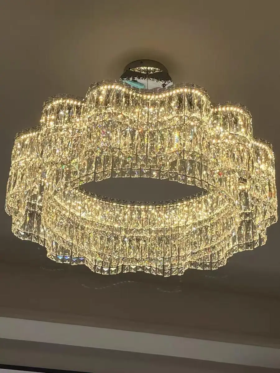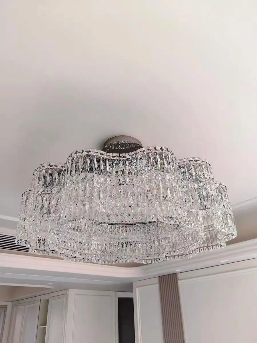 The Crystella series represents the absolute pinnacle of modern crystal ceiling lighting, specifically engineered to bridge the gap between functional high-output illumination and high-end sculptural art. Unlike the hollow, low-quality imitations found in big-box stores, the Crystella is constructed from heavy-duty polished stainless steel, which acts as a robust, corrosion-resistant chassis for its precision-cut crystal array. This specialized construction ensures the fixture remains perfectly stable and dust-proof, maintaining its showroom-quality brilliance for years without fading or yellowing.