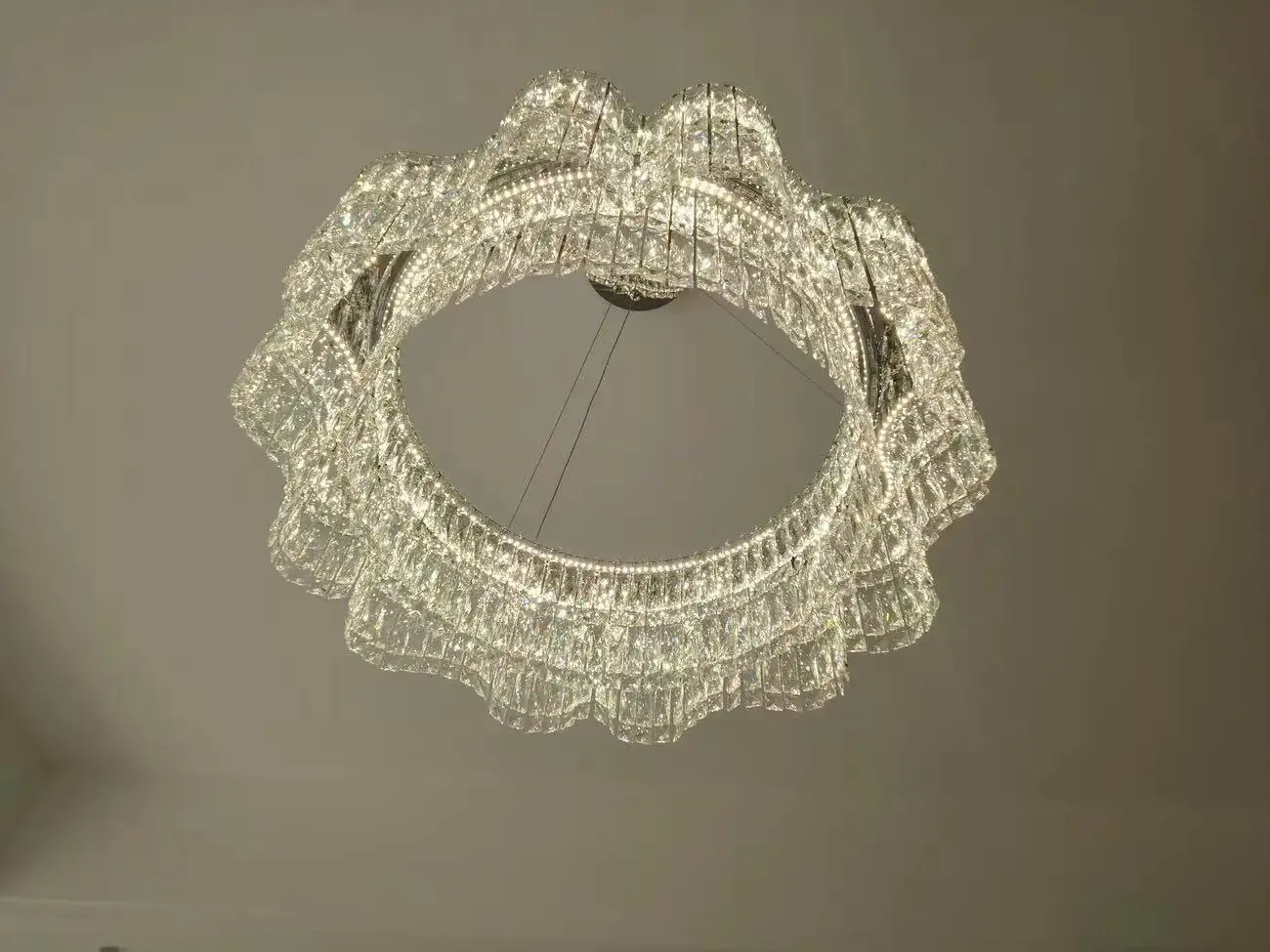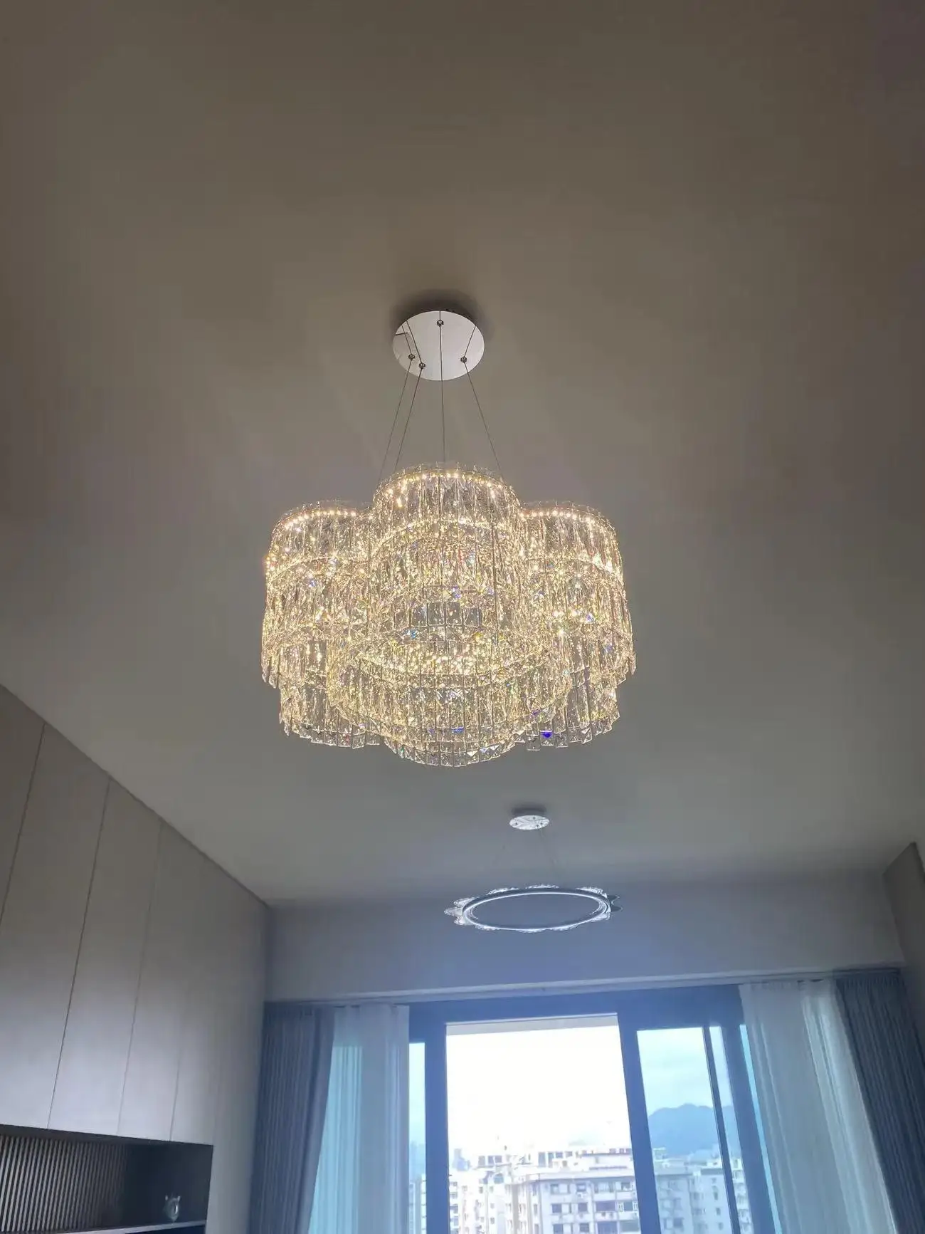• High-End Architectural Crystal Design: Features precision-cut K9 crystals paired with a polished stainless steel frame to create dramatic, prismatic reflections across any room.